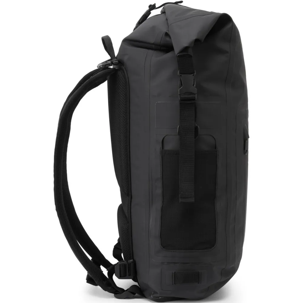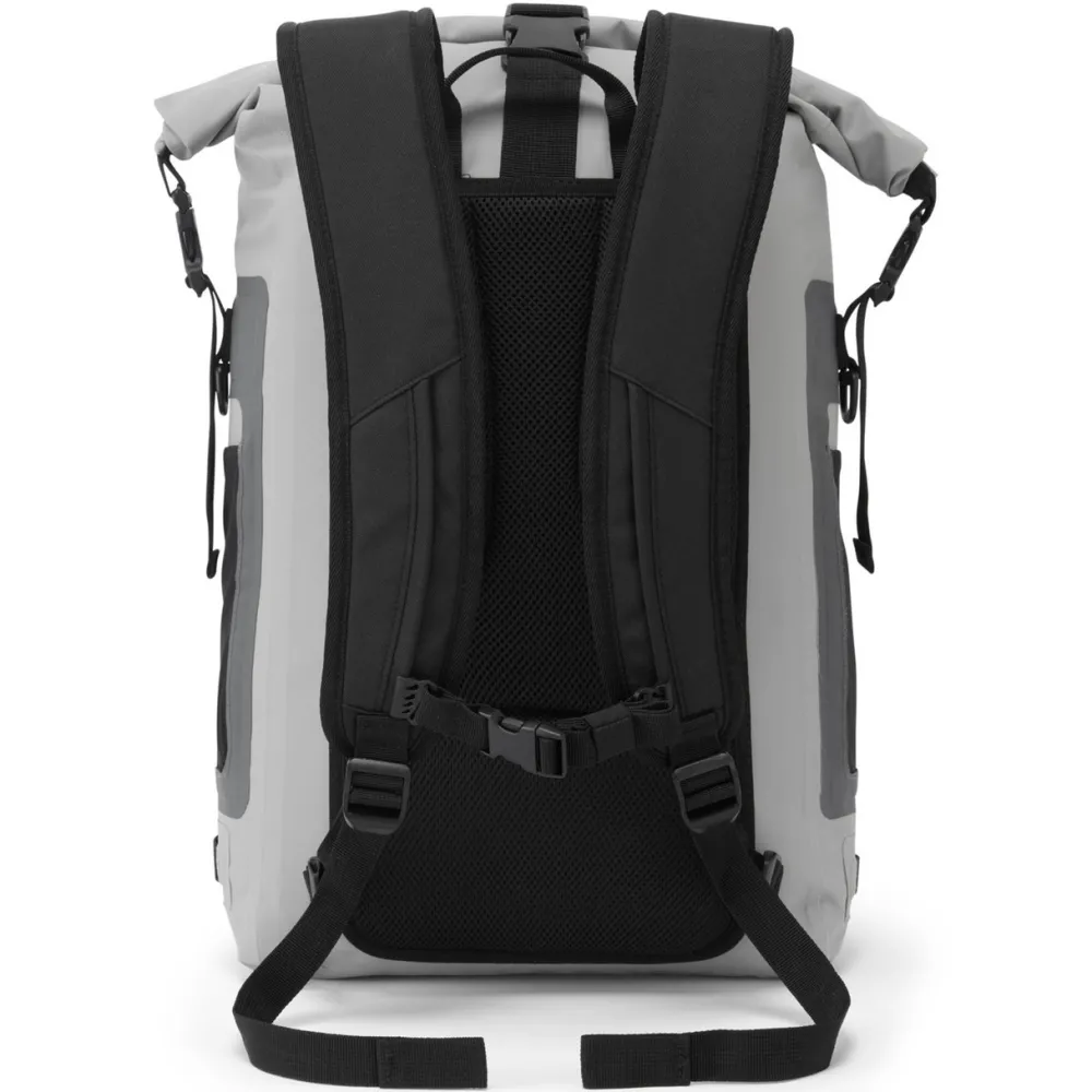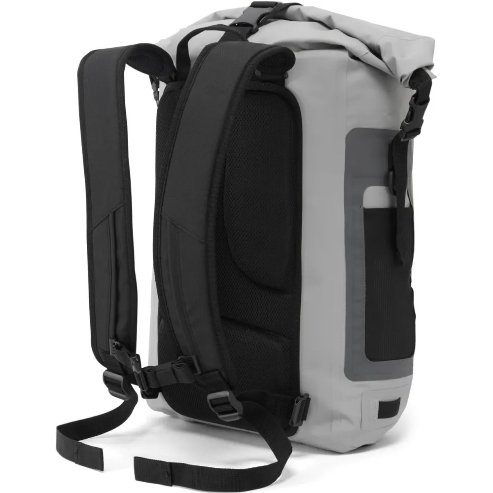 welded seams. The roll-down closure (we recommend rolling down three times) and side release fastenings create a watertight seal. Featuring a padded compartment and secure zippered pocket